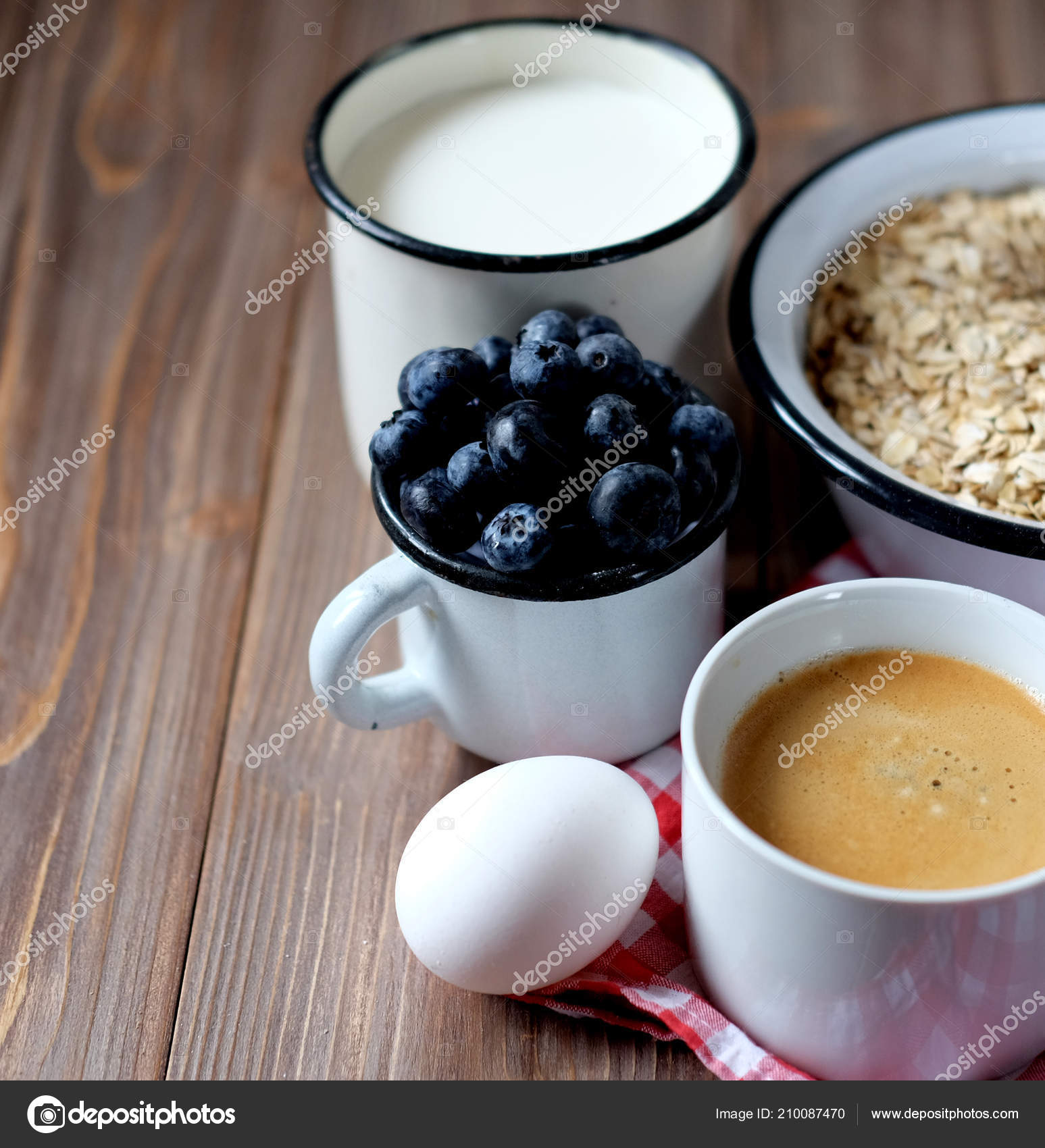 A Healthy Breakfast Oatmeal Porridge Boiled Egg Milk Fresh