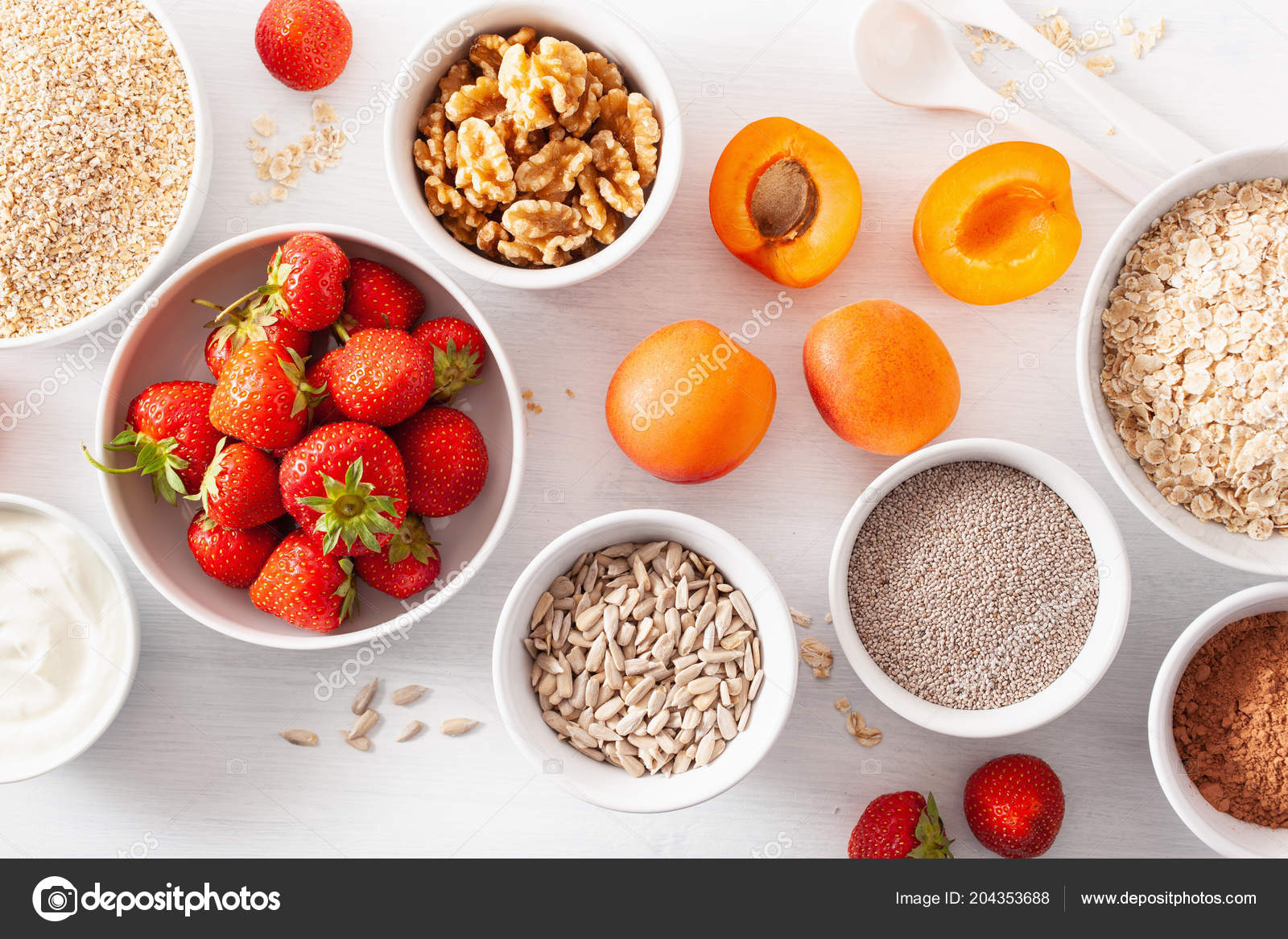 Variaty Raw Cereals Fruits Nuts Breakfast Oatmeal Flakes Steel Cut